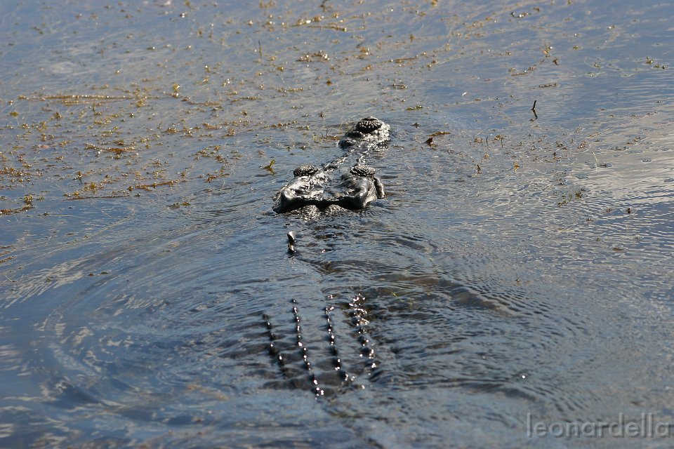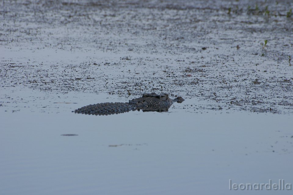 Un coccodrillo che sguazza tranquillo.