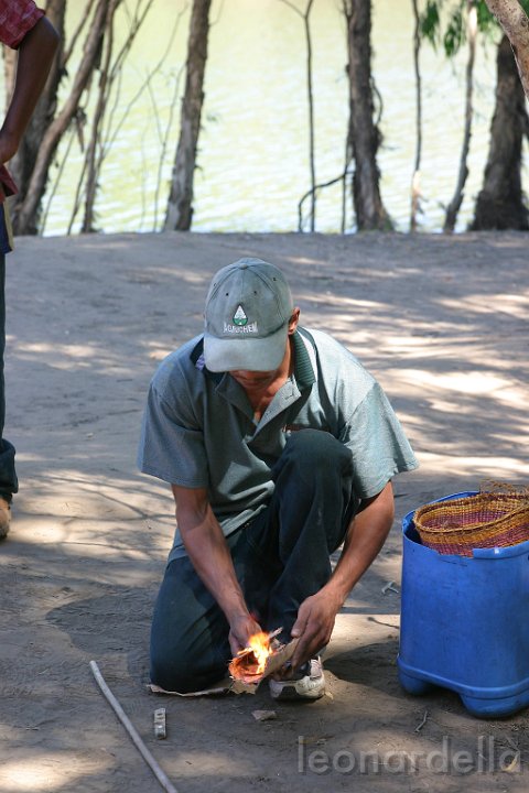 Un aborigeno accende il fuoco...