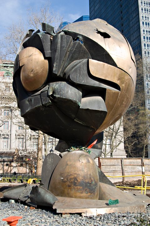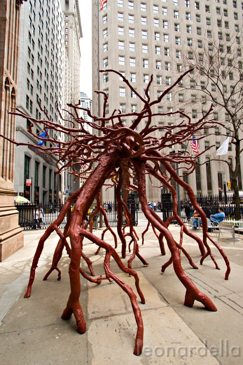 Le radici di un albero sradicato dalla caduta delle due torri.